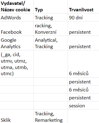 - analytické, které nám pomáhají zvýšit uživatelské pohodlí našeho webu tím, že pochopíme, jak jej uživatelé používají